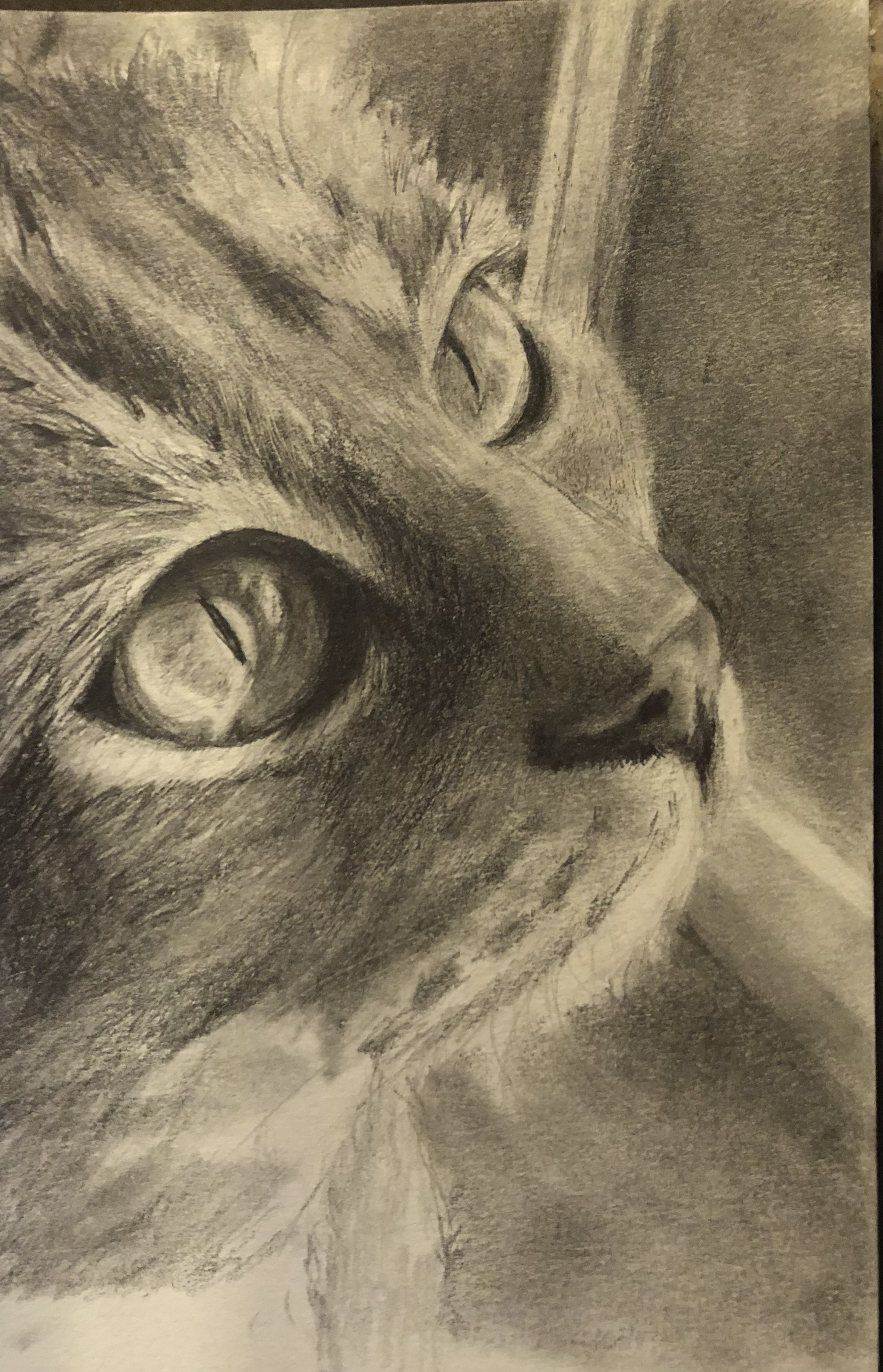 Original Graphite Drawing by Cindy Corrigan. This is a portrait of my cat that I recently lost to cancer, he was my muse and he will be missed for as long as I live, but immortalized in the many, many drawings I have of him. Eventually I will do a painting of him to show off his beautiful green eyes.