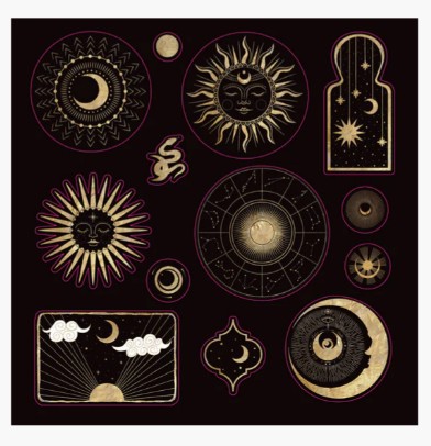 You'll find stickers depicting suns, moons, planets, comets, zodiac signs, nocturnal creatures, crystals, celestial beings, globes, moon phases, and so much more!