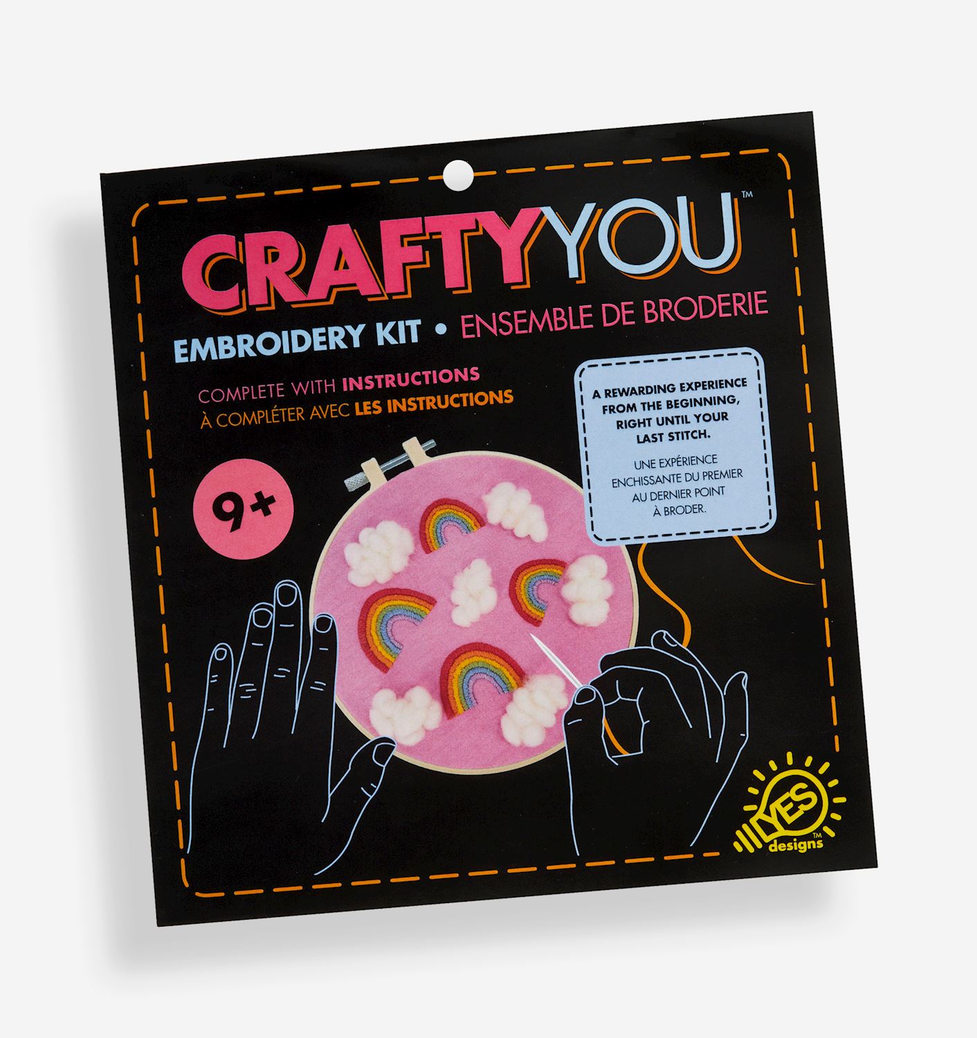 YES Designs Multi-Color Highlighter w/Displayer SKU 476697 $2.00 Price Breaks 24 - 191$2.00 192 or more$1.90 - 24 + Add to Wishlist Checkout Unleash your creativity and enjoy a relaxing activity with this DIY Embroidery Kit, featuring a rainbow design. This kit comes with everything you need to create a beautiful piece of art that you can proudly display or gift to someone special. Suitable for all skill levels, this kit is a wonderful introduction to the art of embroidery. Plastic, Polyester, Canvas.