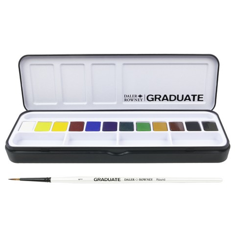 Daler-Rowney Graduate Watercolour is an affordable range of watercolours, ideal for students and amateurs looking for reliability and performance. Graduate watercolours are brilliant, intense and transparent watercolours with excellent working properties. High-quality pigments Excellent lightfastness Free-flowing Creates beautiful and delicate washes Comes in a metal tin
