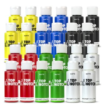 DecoArt Top Notch Matte 2 oz Set of 6 On Sale: $4.31 was $7.19 2 oz bottles, set contains White, Black, Yellow, Blue, Green & Red Add to Cart Out of Stock