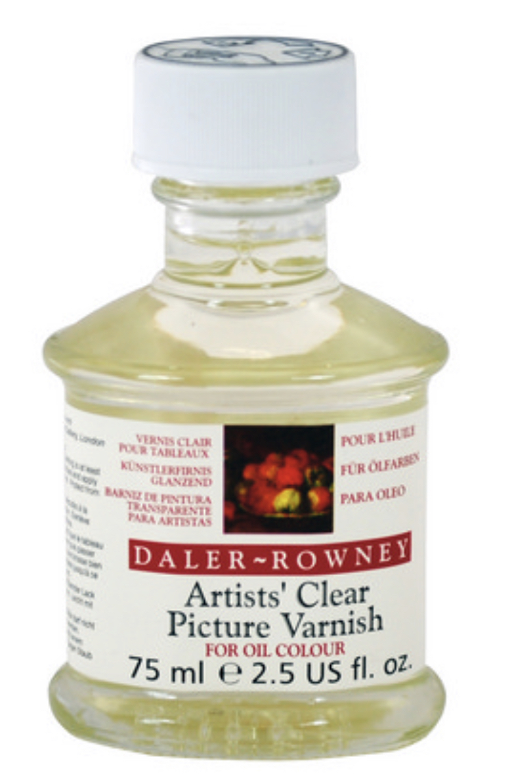 A removable picture varnish for a clear even gloss, which will not yellow or bloom. May be used on both oil and acrylic painting.