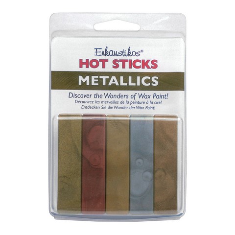 Enkaustikos Hot Sticks® Encaustic Metallics Set Set Includes: Antique Gold Pearl, Antique Bronze Pearl, Antique Copper Pearl, Antique Silver Pearl & Golden Bronze Metallic. Are you new to encaustic? Are you a printmaker? Do you love to try new colors? Hot Sticks® are the answer with 88 individual colors to choose from right at your fingertips. Extremely versatile, Hot Sticks® are ideal for encaustic printmaking, painting, rubbings, and a multitude of mixed media techniques.