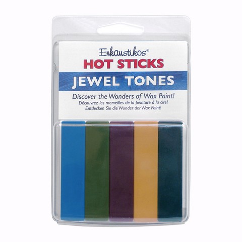 Enkaustikos Hot Sticks® Encaustic Jewel Tones Set Set Includes: Cerulean Blue, Ultramarine Rose, Phthalo Blue (Red Shade), Vagone Green Earth & Bohemian Orange. Are you new to encaustic? Are you a printmaker? Do you love to try new colors? Hot Sticks® are the answer with 88 individual colors to choose from right at your fingertips. Extremely versatile, Hot Sticks® are ideal for encaustic printmaking, painting, rubbings, and a multitude of mixed media techniques. This product can expose you to chemicals, including PB36:1, Oxides of Cobalt & Chromium, which are know to the State of California to cause cancer and birth defects or other reproductive harm. For more information go to www.P65Warnings.ca.gov.