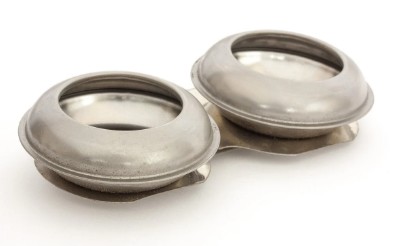 Pot-Shaped Double Palette Cup This aluminum double palette cup has a clip that slides over the edge of your painting palette for convenience and easy access. Great for holding turpentine, linseed oil or other mediums. Palette cups are open without a cover.