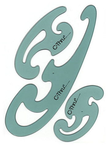 Westcott 3 piece French Curve Set $8.95 French Curve Set has top and bottom inking edges and is transparent green. The set comes in three assorted sizes of 5.375", 6.625" and 12.25". Sold as a a set of three. Add to Cart Out of Stock